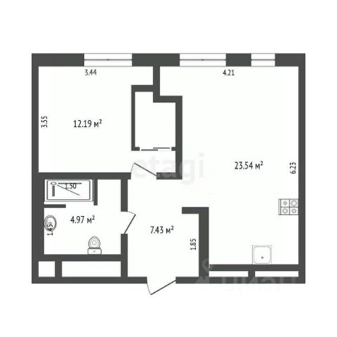 1-комн. квартира с предчистовой отделкой в ЖК "Зарека" на 3 этаже. Общая площадь: 50.46 кв.м., жилая: 14.2 кв.м., площадь просторной кухни-гостиной: 23.1 кв.м. Все окна выходят на одну сторону. В квартире один балкон, один совмещенный санузел. Высота потолков 2.7 м. Дом монолитный, многоподъездный, переменной этажности, от 6 до 16 этажей. Квартира находится в 1-й секции высотой 16 этажей в корпусе 5-2. На этаже 8 квартир. В подъезде 1 пассажирский и 1 грузовой лифт. Окончание строительства - 4 квартал 2026 года. Оформление сделки по договору долевого участия. Квартира с кухней-гостиной и одной спальней в жилом районе "Зарека". Особенности планировки: балкон, предчистовая отделка. квартиры в нашей базе: ЗРК05.2-Ж1.3.6. Проект На планировочную структуру "Зареки" повлияла близость к автомобильному мосту Челюскинцев. Мы расположили жилые здания так, чтобы они постепенно удалялись от проезжей части. Приём напоминает лесенку: чем сильнее мост возвышается над участком застройки, тем дальше по отношению к нему стоят дома. Этот ступенчатый сдвиг позволил нам сформировать буфер между кварталами и оживлённой магистралью. Мы намерены высадить здесь высокие деревья и создать дополнительную защиту от дорожных шума и пыли. В границах нашего участка мы намерены разместить школу и два встроенных детских сада на 135 и 150 мест. Общественные пространства С севера на юг территорию будет пронизывать пешеходный бульвар. Мы мыслим это общественное пространство как главный центр притяжения. На нём будут сосредоточены основные детские игровые и спортивные зоны, места для встреч и спокойного отдыха. Он также сыграет роль мостика, ведущего к другим нашим проектам — "Европейскому кварталу" и "Дому у озера". Одна из базовых идей мастер-плана касается береговой линии. Сегодня озеленение этой территории носит стихииныи характер, а прямому доступу к Туре препятствует дамба. Мы хотим благоустроить пространства у воды и открыть их для людей. Архитекторы спроектировали систему многоярусных троп и спусков к реке, смотровые площадки и места для активного отдыха и пикников. #Z6cl8A Купить 1-комнатную квартиру площадью примерно 50 м2 (кв.м.) в Тюмени.