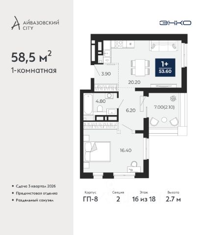 Просторная 1-комн. квартира с предчистовой отделкой в ЖК "Айвазовский" на 16 этаже. Общая площадь: 58.5 кв.м. Высота потолков 2.7 м. Дом монолитный, многоподъездный, переменной этажности, от 14 до 24 этажей. Квартира находится во 2-й секции высотой 18 этажей в корпусе ГП-8. На этаже 5 квартир. В подъезде 1 пассажирский и 1 грузовой лифт. Окончание строительства - 3 квартал 2026 года. Оформление сделки по договору долевого участия. Новый жилой район располагается в живописном месте на берегу Туры в центральной части города. Принципиально новое пространство для жизни в центре современного города для тех, чьи мечты сбываются, кто нацелен на постоянный рост, перемены к лучшему для себя и своих близких. Каждая деталь ЖК "Айвазовский" вдохновляет и заряжает на новые свершения: авторская архитектура, сбалансированная продуманная инфраструктура, дизайнерские дворы со спортивными и детскими площадками, парковые зоны с фонтанами, водный канал, украшающий центральный прогулочный маршрут района и многое другое. В 2019 года проект стал лауреатом престижной премии Urban Awards 2019 в номинации "Лучший строящийся региональный жилой комплекс бизнес-класса". Главная особенность Айвазовский - соседство разных архитектурных школ в рамках одного дома. Изысканная классика, выразительная эклектика и оригинальный модерн - жить в одном из таких домов настоящий повод для гордости. Айвазовский это идеальное сочетание комфорта, технологий и развитой инфраструктуры. Вход в подъезд возможен с улицы и со двора. Отправляясь на работу или за покупками, жители могут выйти с внешней стороны дома, а для прогулки с ребенком со стороны двора. Экологически чистые материалы и энергосберегающие технологии, качественное освещение общественных зон, видеонаблюдение по всей территории жилого района (в том числе в подъездах, лифтах и в подземном паркинге), закрытые дворы с доступом только для жителей Айвазовский. Часть домов в Айвазовский будут оснащены подземным паркингом. Востребованный в нашем климатическом поясе формат хранения автомобилей защитит собственность владельца в любое время года. Аккредитация в банках: ПАО Банк "ВТБ", "Сбербанк России", ПАО "Газпромбанк", ОАО "Альфа-Банк", АО "ДОМ.РФ" и других. #ZMeicC Продам 1-комнатную квартиру 60 м2 (квадратных метров) в Тюмени.