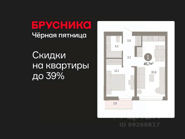 Номер предложения: 44074. Купить 1-комнатную квартиру до 7 млн. рублей в Тюмени.
