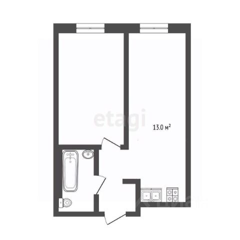 В квартире обустроены кухня-гостиная правильной прямоугольной формы 22.5м2, спальная комната 11.5м2, прихожая 9.5м2, ванная комната 4.2м2, туалет 3м2, гардеробная комната 6.5м2. Дополнительно к площади квартиры идет большой балкон площадью 6.5м2. Общая площадь квартира + балкон составляет 64м2.
