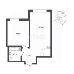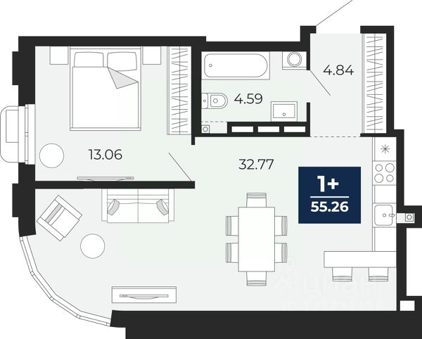 Просторная однокомнатная квартира в ЖК "Айвазовский" на 5 этаже. Общая площадь: 54.92 кв.м., жилая: 13.4 кв.м., площадь просторной кухни-столовой: 21.29 кв.м. Все окна выходят на одну сторону. В квартире два балкона, один совмещенный санузел. Высота потолков 2.7 м.