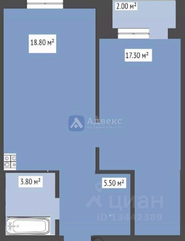 Продается просторная квартира 1+ площадью 34,3 кВ.м.: