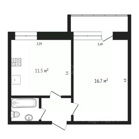 • ✓ В базе Циан 1 1-комнатных квартир без ремонта в микрорайоне Маяк в городе Тюмень