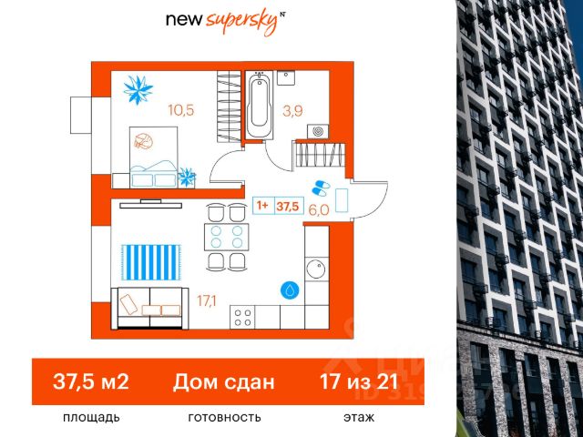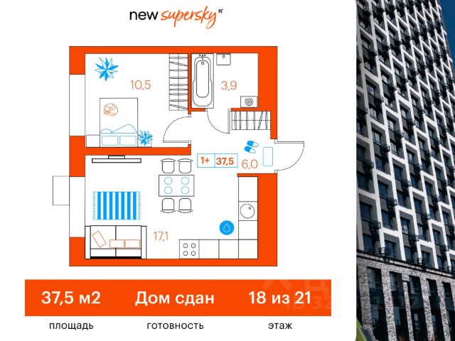 Продается полноценная однокомнатная квартира в шикарном ЖК комфорт класса SuperSky, расположенном в 15 минутах от центра города. Дом сдается летом 2025 года.