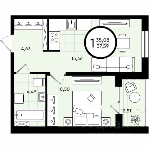 Продаётся квартира площадью 38.2 м2 в жилом комплексе "Смородина". Квартира находится на 4 этаже, жилая площадь квартиры 10.83 м2, площадь просторной кухни — 14.36 м2. Среди особенностей планировки — изолированные комнаты с окнами на одну сторону, 1 совмещённый санузел. Срок сдачи — IV кв. 2026 Жилой комплекс "Смородина" — это: - уютный малоэтажный комплекс в районе ММС - дома высотой 4 этажа - квартиры от студий до семейных вариантов с отапливаемыми лоджиями - экологичные материалы в благоустройстве территории Окружение В 5 минутах ходьбы от проекта — озеро Липовое с песчаным пляжем и лесопарковая зона. Инфраструктура В шаговой доступности есть все для комфортной жизни: школы, детские сады, магазины и аптеки. Рядом с проектом — остановка общественного транспорта. Благоустройство Прямо во дворе — собственные грядки для жителей, где можно выращивать зелень и цветы. Для детей оборудованы детские площадки из натуральных материалов. Лобби Вдохновленные современными тенденциями наши парадные разработаны с акцентом на эстетическую привлекательность и практичность. Использование натуральных материалов и ярких цветовых акцентов создает атмосферу уюта и стиля. Планировки Среди многообразия продуманных планировок есть и уютные студии, и просторные семейные варианты. Во всех квартирах предусмотрены отапливаемые лоджии, где можно устроить зону отдыха или рабочий кабинет. 1-комнатная квартира в дешевой новостройке в Тюмени.