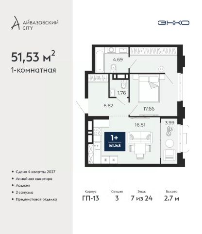 1-комн. апартаменты в ЖК "1А Первомайская" на 5 этаже. Апартаменты без отделки, после оформления собственности можно делать ремонт. Общая площадь: 72.6 кв.м., жилая: 30 кв.м., площадь просторной кухни-гостиной: 15 кв.м. Все окна выходят на одну сторону. В апартаментах одна лоджия, один совмещенный и один раздельный санузел. Высота потолков 2.7 м.