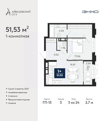 Продается 1-комн. квартира от застройщика с предчистовой отделкой в ЖК "Айвазовский" на 3 этаже. Общая площадь: 51.53 кв.м., жилая: 17.66 кв.м., площадь просторной кухни-столовой: 16.81 кв.м. Все окна выходят на одну сторону. В квартире одна лоджия, один совмещенный и один раздельный санузел. Высота потолков 2.7 м. Дом монолитный, многоподъездный, высотой 24 этажа. Квартира находится в 3-й секции в корпусе ГП-13. На этаже 9 квартир. В подъезде 1 пассажирский и 1 грузовой лифт. Окончание строительства - 4 квартал 2027 года. Оформление сделки по договору долевого участия. Новый жилой район располагается в живописном месте на берегу Туры в центральной части города. Принципиально новое пространство для жизни в центре современного города для тех, чьи мечты сбываются, кто нацелен на постоянный рост, перемены к лучшему для себя и своих близких. Каждая деталь ЖК "Айвазовский" вдохновляет и заряжает на новые свершения: авторская архитектура, сбалансированная продуманная инфраструктура, дизайнерские дворы со спортивными и детскими площадками, парковые зоны с фонтанами, водный канал, украшающий центральный прогулочный маршрут района и многое другое. В 2019 года проект стал лауреатом престижной премии Urban Awards 2019 в номинации "Лучший строящийся региональный жилой комплекс бизнес-класса". Главная особенность Айвазовский - соседство разных архитектурных школ в рамках одного дома. Изысканная классика, выразительная эклектика и оригинальный модерн - жить в одном из таких домов настоящий повод для гордости. Айвазовский это идеальное сочетание комфорта, технологий и развитой инфраструктуры. Вход в подъезд возможен с улицы и со двора. Отправляясь на работу или за покупками, жители могут выйти с внешней стороны дома, а для прогулки с ребенком со стороны двора. Экологически чистые материалы и энергосберегающие технологии, качественное освещение общественных зон, видеонаблюдение по всей территории жилого района (в том числе в подъездах, лифтах и в подземном паркинге), закрытые дворы с доступом только для жителей Айвазовский. Часть домов в Айвазовский будут оснащены подземным паркингом. Востребованный в нашем климатическом поясе формат хранения автомобилей защитит собственность владельца в любое время года. Аккредитация в банках: ПАО Банк "ВТБ", ПАО "Газпромбанк", ОАО "Альфа-Банк", "Сбербанк России", ПАО Банк "ФК Открытие" и других. #26TM8w Продается 1-комнатная квартира с двумя санузлами в Тюменской области.