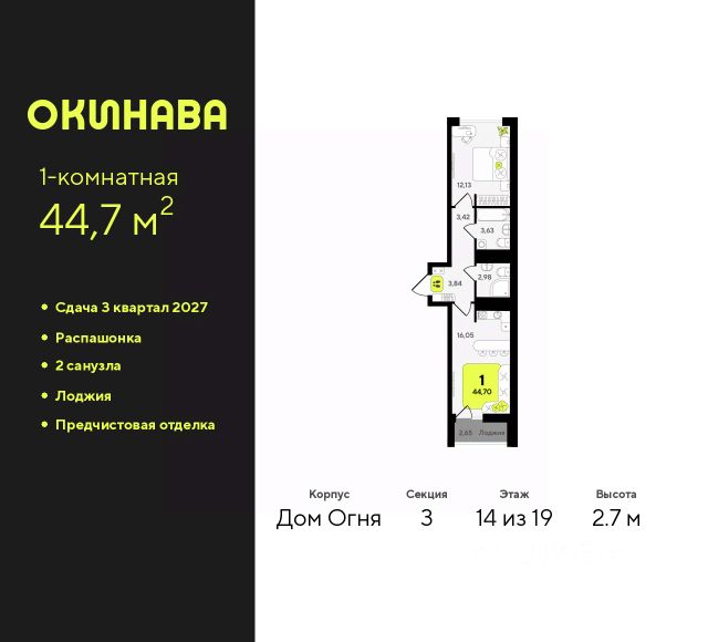 1-комн. квартира от застройщика с предчистовой отделкой в ЖК "Окинава" на 2 этаже. Общая площадь: 65.75 кв.м., жилая: 12.99 кв.м., площадь просторной кухни-столовой: 29.96 кв.м. Квартира - распашонка, без проходных комнат, окна выходят на paзные стороны дома. В квартире одна лоджия, два совмещенных санузла. Высота потолков 2.7 м. Квартира будет сдана с предчистовой отделкой: на полах стяжка под финишное покрытие, стены подготовлены под покраску или оклейку обоями, разведена вся электрика с подготовкой для установки выключателей и освещения. При желании вы можете заказать отделку под ключ, варианты возможных решений представлены в альбоме фотографий. Дом монолитный, многоподъездный, переменной этажности, от 11 до 19 этажей. Квартира находится в 4-й секции высотой 17 этажей в корпусе Дом Воды. На этаже 4 квартиры. В подъезде 1 пассажирский и 1 грузовой лифт. Окончание строительства - 4 квартал 2026 года. Оформление сделки по договору долевого участия. ЖК "Окинава" это не просто жилой комплекс, это остров 4 стихий. Они отражаются во внешнем виде фасадов домов, обустройстве дворов и внутреннем оформлении холлов. Каждая из стихий это отдельный дом. Между домами раскинется большой двухуровневый пешеходный бульвар. Первый уровень прогулочный с местами для отдыха, амфитеатром и фонтанами. На втором уровне расположатся площадки для детей, спортивных игр и тренировок. Квартал будет располагать богатой инфраструктурой: на первых этажах разместятся магазины, пекарни, кофейни, пункты выдачи, аптеки, детские центры, цветочные салоны и многое другое, что сделает жизнь поистине комфортной. В жилом комплексе есть кладовые, а также несколько видов паркинга: уличный гостевой, закрытый теплый и паркинг в стилобате, попасть в который можно на лифте с любого жилого этажа. Дворы в каждом доме отражают его стихию, отличаясь по наполнению. Они дополняют друг друга, образуя единое дворовое пространство жилого комплекса. Закрытая территория, свободная от автомобилей, обеспечит безопасность и спокойный отдых. Холлы оформлены керамогранитом, зеркалами и разноуровневым освещением. Витражные входные группы, мягкие зоны ожидания, видеонаблюдение 24/7, вместительные колясочные и даже лапомойки для питомцев всё это будет в ЖК "Окинава". Жилой комплекс "Окинава" находится в активно развивающемся V заречном микрорайоне, недалеко от озера Алебашево, где в будущем расположится масштабный ивент-парк с зонами отдыха. Удобная транспортная развязка позволит добраться до центра всего за 15 минут. #2wAacU Купить 1-комнатную квартиру с двумя санузлами в Тюмени.