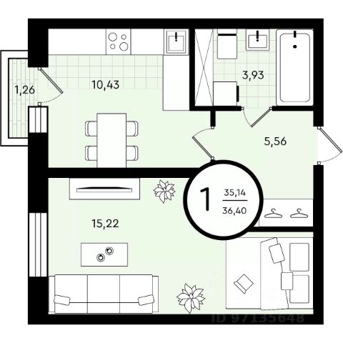 Продается 1-комн. квартира с предчистовой отделкой в ЖК "Прео" на 1 этаже. Общая площадь: 42.45 кв.м., жилая: 14.33 кв.м., площадь просторной кухни-столовой: 17.44 кв.м. Все окна выходят на одну сторону. В квартире один совмещенный санузел. Высота потолков 2.7 м.