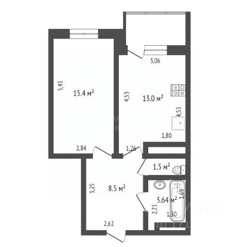 Общая площадь 36,7 м2.