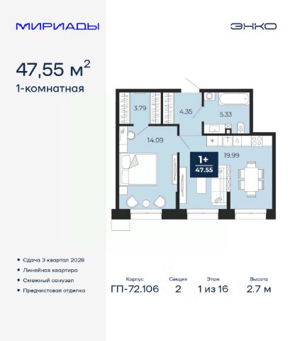 Квартира в рассрочку без процентов от застройщика. Эксклюзивные ипотечные условия. Дом будет сдан в 4 квартале 2025 года. Информация по телефону, наши менеджеры вам все расскажут. Продается 1-комн. квартира от застройщика с предчистовой отделкой в ЖК "Республики 205" на 1 этаже. Общая площадь: 75.55 кв.м., жилая: 12.7 кв.м., площадь просторной кухни-гостиной: 29.8 кв.м. Все окна выходят на одну сторону. В квартире один балкон, один совмещенный санузел. Терраса площадью 17.1 кв.м. представляет собой роскошную зону отдыха, где вы на свой вкус можете создать атмосферу комфорта и уюта. Высота потолков 2.6 м. В квартире предусмотрены: - окна в пол наполняют квартиру естественным светом, который, в свою очередь, положительно влияет на ваше самочувствие и настроение. Увеличенная площадь остекления позволяет снизить необходимость в использовании ламп и люстр; - в каждой квартире предусмотрена телеметрия; - установлены сейф-двери; - выполнена гидроизоляция мокрых зон. Купить квартиру можно с помощью программ покупки от застройщика Брусника: - ипотека по эксклюзивной ставке с помощью в получении положительного кредитного решения через сервис ипотечный брокер; - квартиры в рассрочку без процентов от застройщика Брусника; - обмен квартиры на новую. Получить одобрение ипотеки или рассрочку, а также осуществить обмен квартир можно онлайн. Дом монолитный, многоподъездный, переменной этажности, от 9 до 17 этажей. Квартира находится в 1-й секции высотой 17 этажей в корпусе 1. На этаже 7 квартир. В подъезде 1 пассажирский и 1 грузовой лифт. Начало строительства - 2 квартал 2023 года. Строительство окончено, дом сдан в 4 квартале 2025 года. Оформление сделки по договору купли-продажи. Район Проект расположен в границах улиц Пермякова, Энергетиков, Воровского и Республики. До центра города — 10 минут на машине. Рядом — автомобильная развязка на пересечении улиц Пермякова и Республики. В шаговой доступности есть школы, детские сады, поликлиники, крупный торговый центр, автовокзал и несколько скверов. Проект "Республики 205" — это проект комплексного развития территории, уникальный по своему наполнению. Переосмысляя бывшую территорию завода медицинского оборудования, мы создадим новое место силы — микрорайон, насыщенный деловой, развлекательной, рекреационной, игровой, образовательной и медицинской инфраструктурой. До каждого полезного сервиса здесь можно будет дойти за 15 минут. Локальными центрами "Республики 205" будут общественные пространства — скверы, парки, бульвары и площади. В границах нашего участка мы намерены разместить школу, рассчитанную на 1550 учеников, два детских сада на 300 мест и встроенный детский сад на 100 мест. В одном из цехов бывшего завода расположится креативный кластер "Кузница". Он станет площадкой для нескольких институций — галереи, лектория, книжного магазина-библиотеки, кинобара и точек креативного pop-up-ритейла. Пешеходные бульвары внутри района соединят между собой улицу ресторанов, детские и спортивные