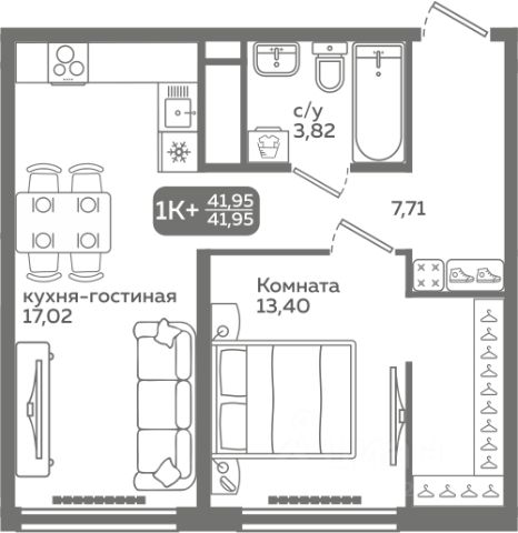 • ✅ Объект наибольшей площади: 42 м²