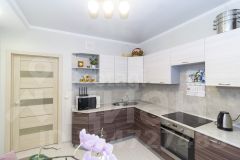 — отдельная кухня. вся техника премиальная, холодильник скрытого монтажа, посудомойка, духовка с свч грилем и паром, кофемашина. Много мест хранения, даже не получилось всё заполнить