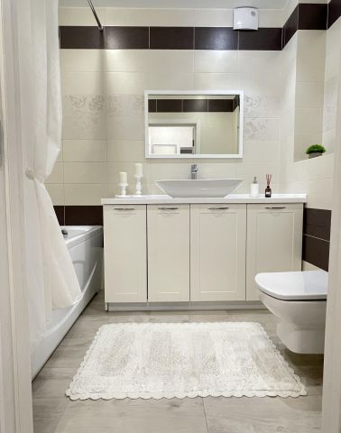 Отдельного внимания заслуживает ванная комната, которая полностью заливается естественным солнечным светом. Это редкое и очень приятное решение, которое сильно меняет повседневные ощущения от квартиры. Днём пространство выглядит живым, чистым и объёмным, а утро в такой ванной ощущается совсем по-другому. Помимо эстетики, это ещё и просто приятно и удобно в жизни.