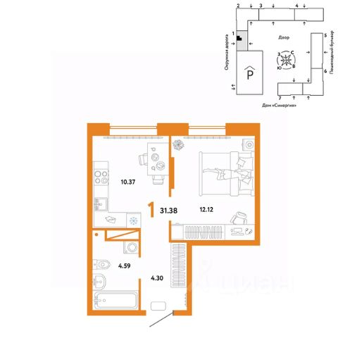 Продаётся квартира площадью 24.7 м2 в жилом комплексе "Айрис". Квартира находится на 11 этаже, жилая площадь квартиры 9.6 м2, площадь просторной кухни — 5.9 м2. Среди особенностей планировки — изолированные комнаты с окнами на одну сторону, 1 совмещённый санузел. Срок сдачи — III кв. 2027 Жилой комплекс "Айрис" — это: - фиджитал-квартал в Тюмени - дома высотой от 7 до 25 этажей - квартиры с системой "Умный дом" - цифровые технологии как элемент благоустройства Окружение В нескольких минутах ходьбы от дома — парк "Комарово" с волейбольной площадкой, открытым кинотеатром, зонами для барбекю и катком. Неподалеку от Airis находится центр иппотерапии, где можно покататься на лошадях и взять уроки верховой езды. На территории Airis появится собственный парк с прогулочными аллеями. Инфраструктура В 5-10 минутах от квартала открыты 2 детских сада и гимназия. На шопинг можно отправиться в торговые комплексы "Колумб" и "Кристалл" — они находятся недалеко от дома. Благоустройство Уютный двор — приватное пространство для жителей. В беседках можно будет почитать книгу в тишине, а в тени деревьев устроиться на пикник. На крыше многоуровневого паркинга будет лаунж-зона с кинотеатром, баскетбольная площадка и воркаут-пространство, где можно позаниматься с виртуальным тренером — достаточно отсканировать код. Лобби Интерьеры лобби выполнены в пастельных тонах с элементами фиджитал-решений. Для отдыха и ожидания гостей создана лаунж-зона. Также есть гостевые санузлы. Колясочные Возвращайтесь налегке после прогулки с малышом — оставить коляску можно в специальном помещении на первом этаже. Кладовые Для сезонных и габаритных вещей предусмотрены отдельные кладовые на цокольном этаже. В каждом помещении уже проведено электричество и выполнена стяжка пола. Паркинг На территории — два многоуровневых наземных паркинга. Один из них примыкает к домам — из него можно напрямую пройти в парадные. Планировки Планировки квартала — от компактной студии до сити-хауса с собственным палисадником — соответствуют любым жизненным сценариям. Можно выбрать квартиры с террасами и готовыми дизайнерскими интерьерами.