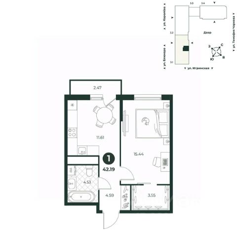 Успейте оформить бронирование по акционной цене, предложение ограничено! Стоимость квартиры указана со скидкой, ваша экономия составит 338,091 руб. По всем вопросам обращайтесь в офис продаж, наши менеджеры вам все расскажут. Просторная однокомнатная квартира с предчистовой отделкой в ЖК "Мириады" на 11 этаже. Общая площадь: 43.8 кв.м. Высота потолков 2.7 м. Дом монолитный, трехподъездный, переменной этажности, от 14 до 16 этажей. Квартира находится во 2-й секции высотой 16 этажей в корпусе ГП-72.103. На этаже 6 квартир. В подъезде 1 пассажирский и 1 грузовой лифт. На сегодняшний день строительство завершено, дом сдан в 4 квартале 2025 года. Оформление сделки по договору купли-продажи. Вселенная бесконечных историй. Ранее невиданный Тюмени масштаб: территория 240 гектаров и 1 650 000 м² застройки. Мириады это город масштабных перемен и больших возможностей. Город зеленых рощ и зеркальных озер. Город для работы, учебы и развлечений. Город для детей и их родителей. Город для всех и каждого. Проект расположен в районе Мыс рядом с ТРЦ "Тюмень Сити Молл" в границах улицы Тимофея Чаркова, Тобольского тракта и объездной дороги. Срок полного освоения территории - до 2034 года. #zMdeC5