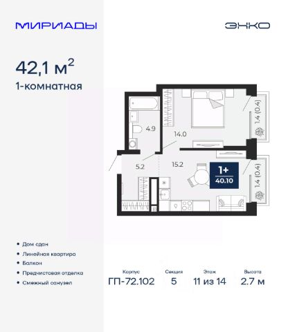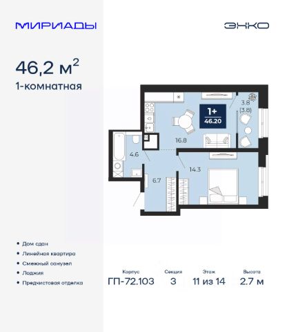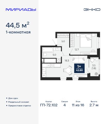 Однокомнатная квартира с предчистовой отделкой в Кварталы "На Минской" на 11 этаже. Общая площадь: 54.34 кв.м., жилая: 11 кв.м., площадь просторной кухни-гостиной: 28.6 кв.м. Все окна выходят на одну сторону. В квартире одна лоджия, один совмещенный санузел. Высота потолков 2.7 м. Дом монолитный, многоподъездный, переменной этажности, от 7 до 16 этажей. Квартира находится в 1-й секции высотой 16 этажей в корпусе 1. На этаже 8 квартир. В подъезде 2 пассажирских лифта. Окончание строительства - 4 квартал 2026 года. Оформление сделки по договору долевого участия. Квартира с кухней-гостиной и одной спальней в кварталах "На Минской". Особенности планировки: предчистовая отделка. квартиры в нашей базе: МНС01-Ж1.11.5. В сердце города Кварталы "На Минской" находятся в самом центре. За десять минут можно дойти до площади 400-летия Тюмени и Большого Драматического театра, Тюменского индустриального и медицинского университетов, спортивного комплекса "Строймаш", ТРЦ "Гудвин" и "Премьер", Тюменского технопарка. Поблизости много детских садов, школ и поликлиник. Пространство разного опыта Создавая кварталы "На Минской" мы вдохновлялись Хакскими дворами в Берлине и улицей Давида Агмашенебели в Тбилиси. И первые и вторая — яркие разнообразные пространства, сформированные прогрессивными архитекторами и притягивающие городских интеллектуалов. Престижная недвижимость здесь соседствует с барами, ресторанами, креативными кластерами и бюро, дизайнерскими лавками. Полезные улицы Кварталы "На Минской" свяжет сеть променадов, автомобильных проездов и велодорожек. Уличный фронт проекта мы сформируем с помощью аллейной посадки деревьев. Они создадут тень для ресторанов и кафе на первых этажах, визуально отделят проезжую и пешеходную части, снизят объём пыли и уровень шума. Мы реализуем проект в районе с развитой базовой инфраструктурой. И поэтому тщательно подошли к программированию коммерции, посчитав, что её основная задача — "закрывать" более высокие потребности жителей. Здесь может появиться пекарня с вкусными круассанами, турагентство на случай, если захочется перезимовать в Сочи, массажный кабинет, ресторан, когда надоело есть дома и многое другое. #zstaAm