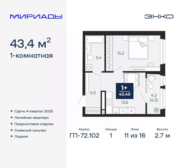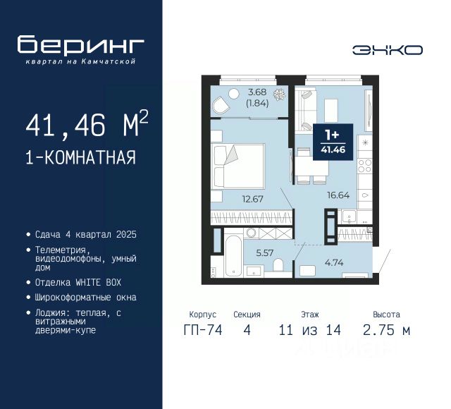 Просторная однокомнатная квартира в ЖК "Беринг" на 11 этаже. Квартира без отделки, после оформления собственности можно делать ремонт. Общая площадь: 39.7 кв.м., жилая: 9.55 кв.м., площадь просторной кухни-столовой: 15.29 кв.м. Все окна выходят на одну сторону. В квартире один балкон и одна лоджия, один совмещенный санузел. Высота потолков 2.75 м. Дом монолитный, многоподъездный, переменной этажности, от 9 до 21 этажей. Квартира находится во 2-й секции высотой 17 этажей в корпусе ГП-74. На этаже 7 квартир. В подъезде 1 пассажирский и 1 грузовой лифт. Окончание строительства - 4 квартал 2025 года. Оформление сделки по договору долевого участия. Подобно знаменитому исследователю, мы чувствуем себя первооткрывателями этой локации. Хотим показать новую суть места, сформировать для вас жизненный опыт, которого ещё не было. Беринг — район зелёного цвета. Беринг — район, который откроется вам с другой стороны. Впечатлит новым уровнем комфорта и качеством жизни. Беринг — открытие на карте города. Первый квартал расположен в районе Тура, в границах улиц: Камчатская Западносибирская Энтузиастов. Вокруг уже есть всё для того, чтобы ежедневная рутина была лишь частью жизни и не доставляла дискомфорта. Школы и детские сады, магазины и аптеки, поликлиника, места для семейного отдыха, пеших и велопрогулок, и даже рыбалки. Масштабное озеленение дворов — визитная карточка ЭНКО и ваш оазис спокойствия, чтобы отвлечься от повседневности. Раскидистые деревья, кустарники, травы и цветы — осталось остановиться, вдохнуть и расслабиться, глядя на эту природную красоту. Стилистика подъездов продолжает концепцию Беринга, вдохновлённого Камчаткой: сдержанный, но при этом впечатляющий дизайн соседствует с удобством и функциональностью. #Zu55Ee