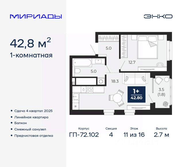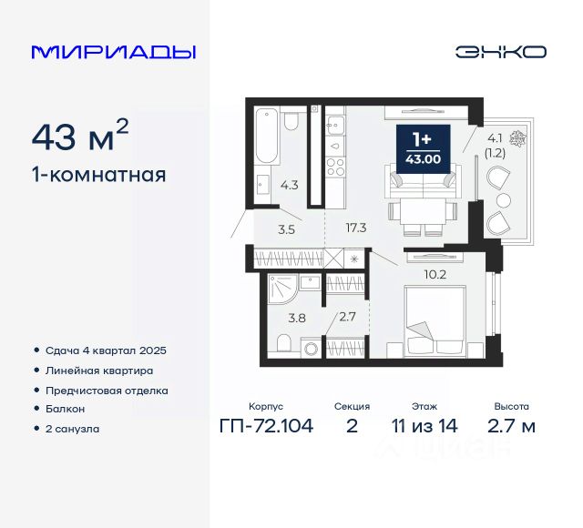 Дом монолитный, трехподъездный, переменной этажности, от 14 до 22 этажей. Квартира находится в 1-й секции высотой 22 этажа в корпусе 208. На этаже 8 квартир. В подъезде 1 пассажирский и 1 грузовой лифт. Окончание строительства - 4 квартал 2025 года. Оформление сделки по договору долевого участия.