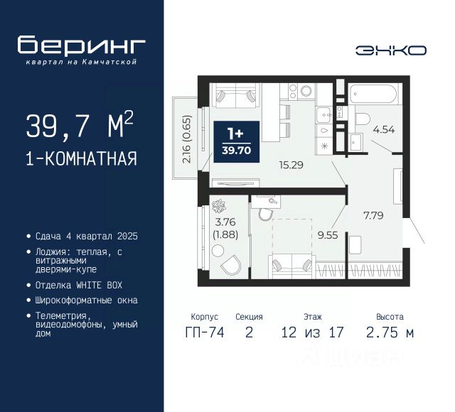 1-комн. квартира в ЖК "Беринг" на 12 этаже. Квартира без отделки, после оформления собственности можно делать ремонт. Общая площадь: 45.04 кв.м., жилая: 12.31 кв.м., площадь просторной кухни-столовой: 19.8 кв.м. Все окна выходят на одну сторону. В квартире один балкон и одна лоджия, один совмещенный санузел. Высота потолков 2.75 м. Дом монолитный, многоподъездный, переменной этажности, от 9 до 22 этажей. Квартира находится в 73.3-й секции высотой 16 этажей в корпусе ГП-73. На этаже 8 квартир. В подъезде 1 пассажирский и 1 грузовой лифт. Окончание строительства - 4 квартал 2025 года. Оформление сделки по договору долевого участия. Подобно знаменитому исследователю, мы чувствуем себя первооткрывателями этой локации. Хотим показать новую суть места, сформировать для вас жизненный опыт, которого ещё не было. Беринг — район зелёного цвета. Беринг — район, который откроется вам с другой стороны. Впечатлит новым уровнем комфорта и качеством жизни. Беринг — открытие на карте города. Первый квартал расположен в районе Тура, в границах улиц: Камчатская Западносибирская Энтузиастов. Вокруг уже есть всё для того, чтобы ежедневная рутина была лишь частью жизни и не доставляла дискомфорта. Школы и детские сады, магазины и аптеки, поликлиника, места для семейного отдыха, пеших и велопрогулок, и даже рыбалки. Масштабное озеленение дворов — визитная карточка ЭНКО и ваш оазис спокойствия, чтобы отвлечься от повседневности. Раскидистые деревья, кустарники, травы и цветы — осталось остановиться, вдохнуть и расслабиться, глядя на эту природную красоту. Стилистика подъездов продолжает концепцию Беринга, вдохновлённого Камчаткой: сдержанный, но при этом впечатляющий дизайн соседствует с удобством и функциональностью. #2M9AWl