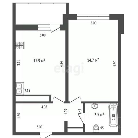 1-комн. квартира от застройщика с предчистовой отделкой в ЖК "Прео" на 12 этаже. Общая площадь: 43.45 кв.м., жилая: 15.41 кв.м., площадь просторной кухни-столовой: 14.98 кв.м. Все окна выходят на одну сторону. В квартире одна лоджия, один совмещенный санузел. Высота потолков 2.7 м.