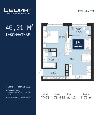Успейте забронировать по этой цене, период акции ограничен! Стоимость квартиры указана со скидкой, ваша экономия составит 347,746 руб. Звоните, мы вам все подробно расскажем. 1-комн. квартира с предчистовой отделкой в ЖК "Мириады" на 12 этаже. Общая площадь: 42.5 кв.м. Высота потолков 2.7 м. Дом монолитный, многоподъездный, переменной этажности, от 14 до 16 этажей. Квартира находится в 5-й секции высотой 14 этажей в корпусе ГП-72.102. На этаже 8 квартир. В подъезде 1 пассажирский и 1 грузовой лифт. Строительство завершено, дом сдан в 4 квартале 2025 года. Оформление сделки по договору купли-продажи. Вселенная бесконечных историй. Ранее невиданный Тюмени масштаб: территория 240 гектаров и 1 650 000 м² застройки. Мириады это город масштабных перемен и больших возможностей. Город зеленых рощ и зеркальных озер. Город для работы, учебы и развлечений. Город для детей и их родителей. Город для всех и каждого. Проект расположен в районе Мыс рядом с ТРЦ "Тюмень Сити Молл" в границах улицы Тимофея Чаркова, Тобольского тракта и объездной дороги. Срок полного освоения территории - до 2034 года. #zmdf14