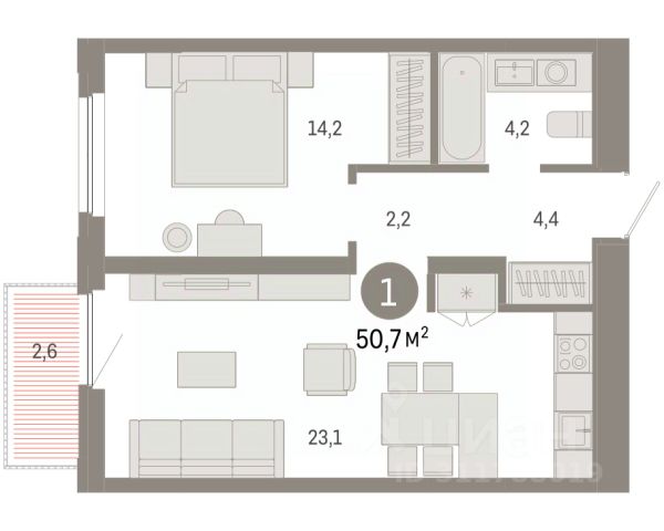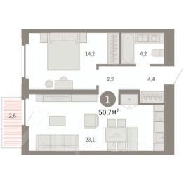 Квартира в счёт первоначального взноса по программе обмена. Звоните, наши менеджеры вам все расскажут! Продается однокомнатная квартира с предчистовой отделкой в ЖК "Зарека" на 12 этаже. Общая площадь: 50.66 кв.м., жилая: 14.2 кв.м., площадь просторной кухни-гостиной: 23.1 кв.м. Все окна выходят на одну сторону. В квартире один балкон, один совмещенный санузел. Высота потолков 2.7 м. Дом монолитный, многоподъездный, переменной этажности, от 6 до 16 этажей. Квартира находится в 1-й секции высотой 16 этажей в корпусе 5-2. На этаже 8 квартир. В подъезде 1 пассажирский и 1 грузовой лифт. Окончание строительства - 4 квартал 2026 года. Оформление сделки по договору долевого участия. Квартира с кухней-гостиной и одной спальней в жилом районе "Зарека". Особенности планировки: предчистовая отделка, балкон. квартиры в нашей базе: ЗРК05.2-Ж1.12.4. Проект На планировочную структуру "Зареки" повлияла близость к автомобильному мосту Челюскинцев. Мы расположили жилые здания так, чтобы они постепенно удалялись от проезжей части. Приём напоминает лесенку: чем сильнее мост возвышается над участком застройки, тем дальше по отношению к нему стоят дома. Этот ступенчатый сдвиг позволил нам сформировать буфер между кварталами и оживлённой магистралью. Мы намерены высадить здесь высокие деревья и создать дополнительную защиту от дорожных шума и пыли. В границах нашего участка мы намерены разместить школу и два встроенных детских сада на 135 и 150 мест. Общественные пространства С севера на юг территорию будет пронизывать пешеходный бульвар. Мы мыслим это общественное пространство как главный центр притяжения. На нём будут сосредоточены основные детские игровые и спортивные зоны, места для встреч и спокойного отдыха. Он также сыграет роль мостика, ведущего к другим нашим проектам — "Европейскому кварталу" и "Дому у озера". Одна из базовых идей мастер-плана касается береговой линии. Сегодня озеленение этой территории носит стихииныи характер, а прямому доступу к Туре препятствует дамба. Мы хотим благоустроить пространства у воды и открыть их для людей. Архитекторы спроектировали систему многоярусных троп и спусков к реке, смотровые площадки и места для активного отдыха и пикников. #255cSF