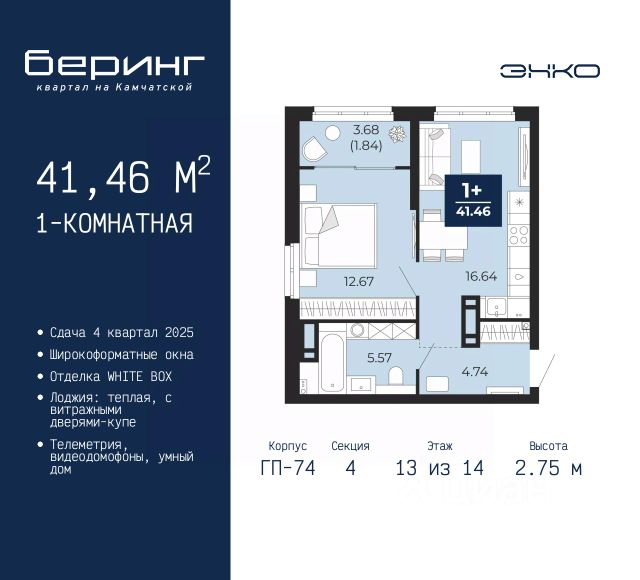 Просторная 1-комн. квартира в ЖК "Беринг" на 13 этаже. Квартира без отделки, полностью готова к чистовой отделке и дальнейшему ремонту. Общая площадь: 32.01 кв.м., жилая: 13.68 кв.м., площадь кухни: 8.85 кв.м. Все окна выходят на одну сторону. В квартире одна лоджия, один совмещенный санузел. Высота потолков 2.75 м. Дом монолитный, многоподъездный, переменной этажности, от 9 до 22 этажей. Квартира находится в 73.3-й секции высотой 16 этажей в корпусе ГП-73. На этаже 8 квартир. В подъезде 1 пассажирский и 1 грузовой лифт. Окончание строительства - 4 квартал 2025 года. Оформление сделки по договору долевого участия. Подобно знаменитому исследователю, мы чувствуем себя первооткрывателями этой локации. Хотим показать новую суть места, сформировать для вас жизненный опыт, которого ещё не было. Беринг — район зелёного цвета. Беринг — район, который откроется вам с другой стороны. Впечатлит новым уровнем комфорта и качеством жизни. Беринг — открытие на карте города. Первый квартал расположен в районе Тура, в границах улиц: Камчатская Западносибирская Энтузиастов. Вокруг уже есть всё для того, чтобы ежедневная рутина была лишь частью жизни и не доставляла дискомфорта. Школы и детские сады, магазины и аптеки, поликлиника, места для семейного отдыха, пеших и велопрогулок, и даже рыбалки. Масштабное озеленение дворов — визитная карточка ЭНКО и ваш оазис спокойствия, чтобы отвлечься от повседневности. Раскидистые деревья, кустарники, травы и цветы — осталось остановиться, вдохнуть и расслабиться, глядя на эту природную красоту. Стилистика подъездов продолжает концепцию Беринга, вдохновлённого Камчаткой: сдержанный, но при этом впечатляющий дизайн соседствует с удобством и функциональностью. #2354DO