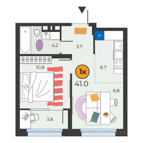Арт. 104157082 Продаётся уютная однокомнатная квартира площадью 44 квадратных метра на 13 этаже кирпичного дома. Дом построен в 2011 году и имеет 15 этажей.