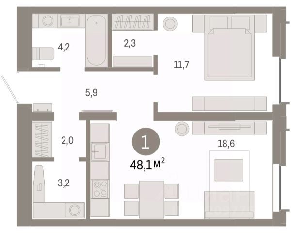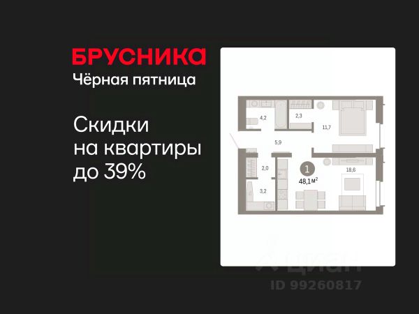 Квартира в счёт первоначального взноса по программе обмена. По всем вопросам обращайтесь в офис продаж, мы вам все подробно расскажем! 1-комн. квартира от застройщика с предчистовой отделкой в ЖК "Республики 205" на 13 этаже. Общая площадь: 48.06 кв.м., жилая: 11.7 кв.м., площадь просторной кухни-гостиной: 18.6 кв.м. Все окна выходят на одну сторону. В квартире один совмещенный санузел. Высота потолков 2.7 м. Купить квартиру можно с помощью программ покупки от застройщика Брусника: - ипотека по эксклюзивной ставке с помощью в получении положительного кредитного решения через сервис ипотечный брокер; - квартиры в рассрочку без процентов от застройщика Брусника; - обмен квартиры на новую. Получить одобрение ипотеки или рассрочку, а также осуществить обмен квартир можно онлайн. Дом монолитный, многоподъездный, переменной этажности, от 7 до 16 этажей. Квартира находится в 3-й секции высотой 16 этажей в корпусе 2. На этаже 7 квартир. В подъезде 2 грузовых лифта. Начало строительства - 1 квартал 2024 года. Окончание строительства - 1 квартал 2026 года. Оформление сделки по договору долевого участия. Район Проект расположен в границах улиц Пермякова, Энергетиков, Воровского и Республики. До центра города — 10 минут на машине. Рядом — автомобильная развязка на пересечении улиц Пермякова и Республики. В шаговой доступности есть школы, детские сады, поликлиники, крупный торговый центр, автовокзал и несколько скверов. Проект "Республики 205" — это проект комплексного развития территории, уникальный по своему наполнению. Переосмысляя бывшую территорию завода медицинского оборудования, мы создадим новое место силы — микрорайон, насыщенный деловой, развлекательной, рекреационной, игровой, образовательной и медицинской инфраструктурой. До каждого полезного сервиса здесь можно будет дойти за 15 минут. Локальными центрами "Республики 205" будут общественные пространства — скверы, парки, бульвары и площади. В границах нашего участка мы намерены разместить школу, рассчитанную на 1550 учеников, два детских сада на 300 мест и встроенный детский сад на 100 мест. В одном из цехов бывшего завода расположится креативный кластер "Кузница". Он станет площадкой для нескольких институций — галереи, лектория, книжного магазина-библиотеки, кинобара и точек креативного pop-up-ритейла. Пешеходные бульвары внутри района соединят между собой улицу ресторанов, детские и спортивные площадки, событийную площадь и летний кинотеатр. Идентификатор квартиры по базе застройщика: РСП-02-3-3. #ZUff2O