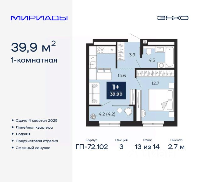 Площадь квартиры - 41 м², и каждый метр здесь работает на вас. Высокие потолки 2.8м добавляют ощущение воздуха и простора. Большая кухня-столовая 12,4 м² правильной формы легко становится местом притяжения - утреннего кофе, семейных ужинов и душевных разговоров. Светлая комната 17,9 м² с выходом на огромную остеклённую лоджию более 6 кв.м наполняется солнцем и воздухом - здесь приятно отдыхать, читать, мечтать. Совмещенный санузел, прихожая с местом под систему хранения - всё продумано для удобства и комфорта.