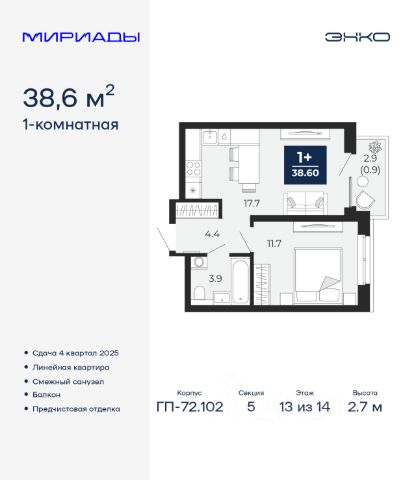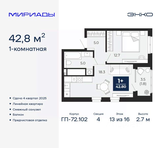 Однокомнатная квартира от застройщика с предчистовой отделкой в ЖК "Беринг" на 13 этаже. Общая площадь: 45.46 кв.м., жилая: 14.54 кв.м., площадь просторной кухни-столовой: 14.71 кв.м. Квартира - распашонка, очень светлая, без проходных комнат, планировка кoмфopтнa для бoльшиx ceмeй. В квартире один балкон, один совмещенный санузел. Высота потолков 2.72 м. Дом монолитный, многоподъездный, переменной этажности, от 17 до 24 этажей. Квартира находится во 2-й секции высотой 19 этажей в корпусе ГП-75. На этаже 7 квартир. В подъезде 2 пассажирских и 1 грузовой лифт. Окончание строительства - 4 квартал 2027 года. Оформление сделки по договору долевого участия. Подобно знаменитому исследователю, мы чувствуем себя первооткрывателями этой локации. Хотим показать новую суть места, сформировать для вас жизненный опыт, которого ещё не было. Беринг — район зелёного цвета. Беринг — район, который откроется вам с другой стороны. Впечатлит новым уровнем комфорта и качеством жизни. Беринг — открытие на карте города. Первый квартал расположен в районе Тура, в границах улиц: Камчатская Западносибирская Энтузиастов. Вокруг уже есть всё для того, чтобы ежедневная рутина была лишь частью жизни и не доставляла дискомфорта. Школы и детские сады, магазины и аптеки, поликлиника, места для семейного отдыха, пеших и велопрогулок, и даже рыбалки. Масштабное озеленение дворов — визитная карточка ЭНКО и ваш оазис спокойствия, чтобы отвлечься от повседневности. Раскидистые деревья, кустарники, травы и цветы — осталось остановиться, вдохнуть и расслабиться, глядя на эту природную красоту. Стилистика подъездов продолжает концепцию Беринга, вдохновлённого Камчаткой: сдержанный, но при этом впечатляющий дизайн соседствует с удобством и функциональностью. #Z699tU Продается 1-комнатная квартира на 13 этаже в Тюменской области.