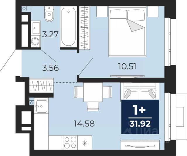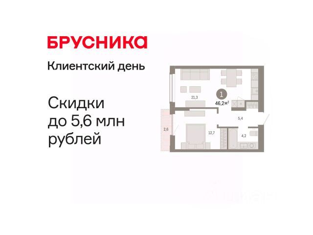 1-комн. квартира с предчистовой отделкой в ЖК "Окинава" на 13 этаже. Общая площадь: 44.11 кв.м., жилая: 15.99 кв.м., площадь просторной кухни-столовой: 15.36 кв.м. Все окна выходят на одну сторону. В квартире одна лоджия, один совмещенный санузел. Высота потолков 2.7 м.