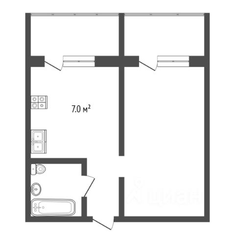 Отличная планировка - просторная кухня-гостиная и стильная спальня.