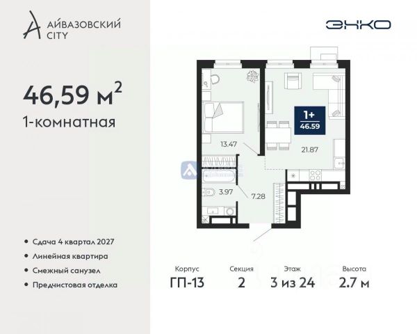 Продается однокомнатная квартира с предчистовой отделкой в ЖК "Беринг" на 13 этаже. Общая площадь: 41.03 кв.м., жилая: 14.72 кв.м., площадь просторной кухни-столовой: 16.59 кв.м. Все окна выходят на одну сторону. В квартире один балкон, один совмещенный санузел. Высота потолков 2.72 м. Дом монолитный, черырехподъездный, переменной этажности, от 19 до 24 этажей. Квартира находится во 2-й секции высотой 19 этажей в корпусе ГП-76. На этаже 8 квартир. В подъезде 1 пассажирский и 1 грузовой лифт. Окончание строительства - 4 квартал 2027 года. Оформление сделки по договору долевого участия. Подобно знаменитому исследователю, мы чувствуем себя первооткрывателями этой локации. Хотим показать новую суть места, сформировать для вас жизненный опыт, которого ещё не было. Беринг — район зелёного цвета. Беринг — район, который откроется вам с другой стороны. Впечатлит новым уровнем комфорта и качеством жизни. Беринг — открытие на карте города. Первый квартал расположен в районе Тура, в границах улиц: Камчатская Западносибирская Энтузиастов. Вокруг уже есть всё для того, чтобы ежедневная рутина была лишь частью жизни и не доставляла дискомфорта. Школы и детские сады, магазины и аптеки, поликлиника, места для семейного отдыха, пеших и велопрогулок, и даже рыбалки. Масштабное озеленение дворов — визитная карточка ЭНКО и ваш оазис спокойствия, чтобы отвлечься от повседневности. Раскидистые деревья, кустарники, травы и цветы — осталось остановиться, вдохнуть и расслабиться, глядя на эту природную красоту. Стилистика подъездов продолжает концепцию Беринга, вдохновлённого Камчаткой: сдержанный, но при этом впечатляющий дизайн соседствует с удобством и функциональностью. #266Ctm Продается 1-комнатная квартира на 13 этаже в Тюмени.