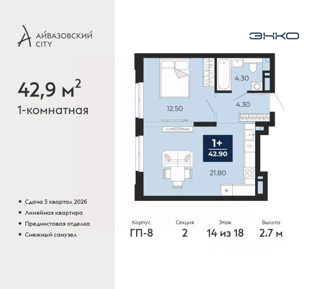 Торопитесь забронировать по акционной цене! Период акции ограничен! Стоимость квартиры указана со скидкой, ваша экономия составит 1,260,000 RUB. Квартира в счёт первоначального взноса по программе обмена. Информация по телефону, наши менеджеры вам все расскажут! 1-комн. квартира с предчистовой отделкой в ЖК "Зарека" на 14 этаже. Общая площадь: 33.71 кв.м., жилая: 8.3 кв.м., площадь просторной кухни-гостиной: 13 кв.м. Все окна выходят на одну сторону. В квартире один балкон, один совмещенный санузел. Высота потолков 2.7 м. Квартира находится в корпусе 5-1. Дом монолитный, одноподъездный, высотой 25 этажей. На этаже 12 квартир. В подъезде 2 пассажирских и 1 грузовой лифт. Окончание строительства - 1 квартал 2027 года. Оформление сделки по договору долевого участия. Квартира с кухней-гостиной и одной спальней в жилом районе "Зарека". Особенности планировки: предчистовая отделка, балкон. квартиры в нашей базе: ЗРК05.1-Ж1.14.4. Проект На планировочную структуру "Зареки" повлияла близость к автомобильному мосту Челюскинцев. Мы расположили жилые здания так, чтобы они постепенно удалялись от проезжей части. Приём напоминает лесенку: чем сильнее мост возвышается над участком застройки, тем дальше по отношению к нему стоят дома. Этот ступенчатый сдвиг позволил нам сформировать буфер между кварталами и оживлённой магистралью. Мы намерены высадить здесь высокие деревья и создать дополнительную защиту от дорожных шума и пыли. В границах нашего участка мы намерены разместить школу и два встроенных детских сада на 135 и 150 мест. Общественные пространства С севера на юг территорию будет пронизывать пешеходный бульвар. Мы мыслим это общественное пространство как главный центр притяжения. На нём будут сосредоточены основные детские игровые и спортивные зоны, места для встреч и спокойного отдыха. Он также сыграет роль мостика, ведущего к другим нашим проектам — "Европейскому кварталу" и "Дому у озера". Одна из базовых идей мастер-плана касается береговой линии. Сегодня озеленение этой территории носит стихииныи характер, а прямому доступу к Туре препятствует дамба. Мы хотим благоустроить пространства у воды и открыть их для людей. Архитекторы спроектировали систему многоярусных троп и спусков к реке, смотровые площадки и места для активного отдыха и пикников. #z580VE