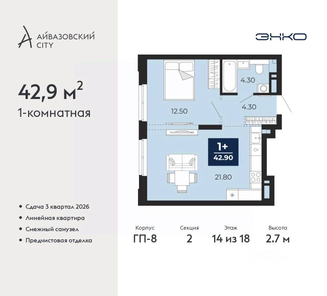 1-комн. квартира с предчистовой отделкой в ЖК "Окинава" на 14 этаже. Общая площадь: 47.61 кв.м., жилая: 14.34 кв.м., площадь просторной кухни-столовой: 16.49 кв.м. Квартира угловая, очень светлая, естественная вентиляция при открытии окон. В квартире одна лоджия, один совмещенный санузел. Высота потолков 2.7 м. Квартира будет сдана с предчистовой отделкой: на полах стяжка под финишное покрытие, стены подготовлены под покраску или оклейку обоями, разведена вся электрика с подготовкой для установки выключателей и освещения. При желании вы можете заказать отделку под ключ, варианты возможных решений представлены в альбоме фотографий. Дом монолитный, многоподъездный, переменной этажности, от 13 до 19 этажей. Квартира находится в 7-й секции высотой 17 этажей в корпусе Дом Огня. На этаже 8 квартир. В подъезде 1 пассажирский и 1 грузовой лифт. Окончание строительства - 3 квартал 2027 года. Оформление сделки по договору долевого участия. ЖК "Окинава" это не просто жилой комплекс, это остров 4 стихий. Они отражаются во внешнем виде фасадов домов, обустройстве дворов и внутреннем оформлении холлов. Каждая из стихий это отдельный дом. Между домами раскинется большой двухуровневый пешеходный бульвар. Первый уровень прогулочный с местами для отдыха, амфитеатром и фонтанами. На втором уровне расположатся площадки для детей, спортивных игр и тренировок. Квартал будет располагать богатой инфраструктурой: на первых этажах разместятся магазины, пекарни, кофейни, пункты выдачи, аптеки, детские центры, цветочные салоны и многое другое, что сделает жизнь поистине комфортной. В жилом комплексе есть кладовые, а также несколько видов паркинга: уличный гостевой, закрытый теплый и паркинг в стилобате, попасть в который можно на лифте с любого жилого этажа. Дворы в каждом доме отражают его стихию, отличаясь по наполнению. Они дополняют друг друга, образуя единое дворовое пространство жилого комплекса. Закрытая территория, свободная от автомобилей, обеспечит безопасность и спокойный отдых. Холлы оформлены керамогранитом, зеркалами и разноуровневым освещением. Витражные входные группы, мягкие зоны ожидания, видеонаблюдение 24/7, вместительные колясочные и даже лапомойки для питомцев всё это будет в ЖК "Окинава". Жилой комплекс "Окинава" находится в активно развивающемся V заречном микрорайоне, недалеко от озера Алебашево, где в будущем расположится масштабный ивент-парк с зонами отдыха. Удобная транспортная развязка позволит добраться до центра всего за 15 минут. #2WE3iB
