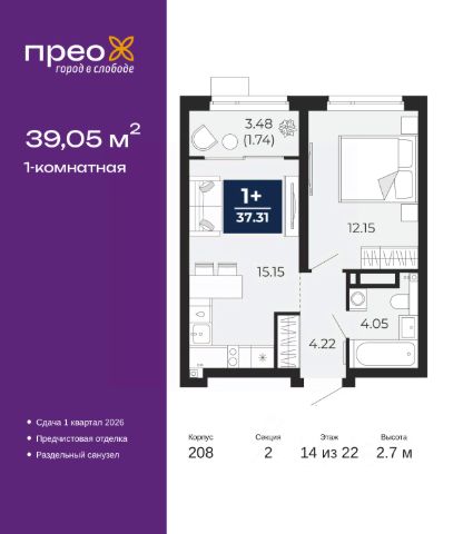 Продаётся квартира площадью 36.7 м2 в жилом комплексе "Айрис". Квартира находится на 14 этаже, жилая площадь квартиры 9.9 м2, площадь просторной кухни — 17.9 м2. Среди особенностей планировки — изолированные комнаты с окнами на одну сторону, 1 совмещённый санузел. Срок сдачи — III кв. 2027 Жилой комплекс "Айрис" — это: - фиджитал-квартал в Тюмени - дома высотой от 7 до 25 этажей - квартиры с системой "Умный дом" - цифровые технологии как элемент благоустройства Окружение В нескольких минутах ходьбы от дома — парк "Комарово" с волейбольной площадкой, открытым кинотеатром, зонами для барбекю и катком. Неподалеку от Airis находится центр иппотерапии, где можно покататься на лошадях и взять уроки верховой езды. На территории Airis появится собственный парк с прогулочными аллеями. Инфраструктура В 5-10 минутах от квартала открыты 2 детских сада и гимназия. На шопинг можно отправиться в торговые комплексы "Колумб" и "Кристалл" — они находятся недалеко от дома. Благоустройство Уютный двор — приватное пространство для жителей. В беседках можно будет почитать книгу в тишине, а в тени деревьев устроиться на пикник. На крыше многоуровневого паркинга будет лаунж-зона с кинотеатром, баскетбольная площадка и воркаут-пространство, где можно позаниматься с виртуальным тренером — достаточно отсканировать код. Лобби Интерьеры лобби выполнены в пастельных тонах с элементами фиджитал-решений. Для отдыха и ожидания гостей создана лаунж-зона. Также есть гостевые санузлы. Колясочные Возвращайтесь налегке после прогулки с малышом — оставить коляску можно в специальном помещении на первом этаже. Кладовые Для сезонных и габаритных вещей предусмотрены отдельные кладовые на цокольном этаже. В каждом помещении уже проведено электричество и выполнена стяжка пола. Паркинг На территории — два многоуровневых наземных паркинга. Один из них примыкает к домам — из него можно напрямую пройти в парадные. Планировки Планировки квартала — от компактной студии до сити-хауса с собственным палисадником — соответствуют любым жизненным сценариям. Можно выбрать квартиры с террасами и готовыми дизайнерскими интерьерами.