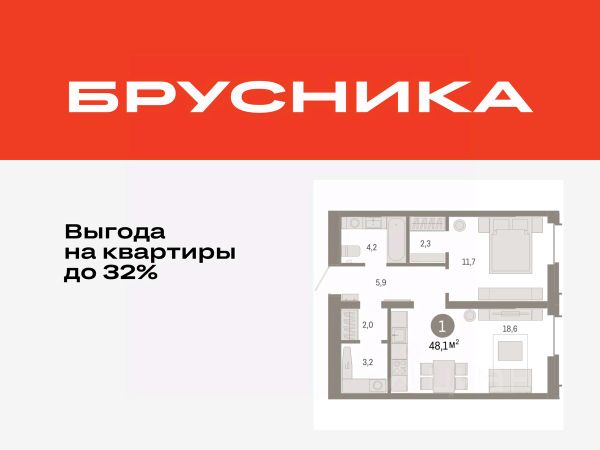 Однокомнатная квартира от застройщика с предчистовой отделкой в ЖК "Республики 205" на 14 этаже. Общая площадь: 48.06 кв.м., жилая: 11.7 кв.м., площадь просторной кухни-гостиной: 18.6 кв.м. Все окна выходят на одну сторону. В квартире один совмещенный санузел. Высота потолков 2.7 м.