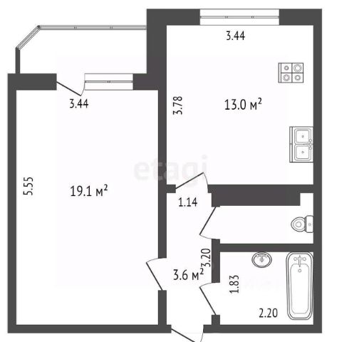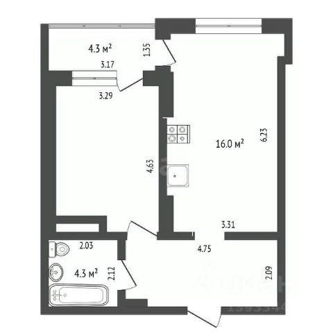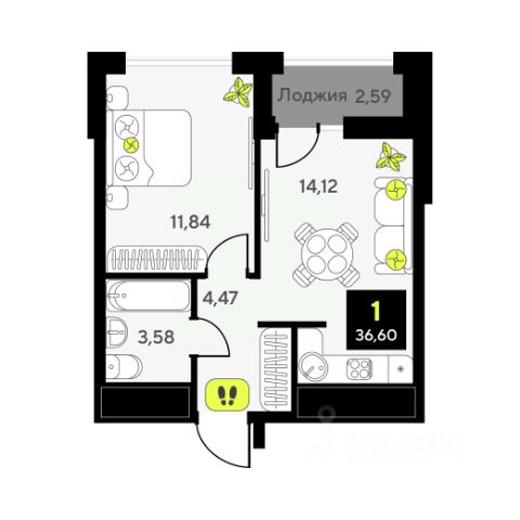 1-комн. квартира от застройщика с предчистовой отделкой в ЖК "Прео" на 14 этаже. Общая площадь: 43.45 кв.м., жилая: 15.41 кв.м., площадь просторной кухни-столовой: 14.98 кв.м. Все окна выходят на одну сторону. В квартире одна лоджия, один совмещенный санузел. Высота потолков 2.7 м.