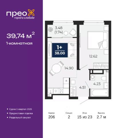 Квартира с кухней-гостиной и одной спальней в Октябрьском на Туре. Особенности планировки: балкон, предчистовая отделка. квартиры в нашей базе: ОКТ09-Ж1.15.4. Район Проект расположен на берегу реки, в одном из самых живописных и экологичных районов Тюмени. За последние годы облик района изменился. По соседству с индивидуальной застройкой выросли многоквартирные дома. При проектировании "Октябрьского на Туре" нашей приоритетной задачей стало сохранение природного ландшафта: мы постарались деликатно вписать в него современную архитектуру. Квартал удачно расположен с точки зрения дорожной инфраструктуры. На автомобиле путь до центра города составит 15 минут. Добраться до набережной и главных тюменских достопримечательностей можно и на общественном транспорте. В пешей доступности находится автобусная остановка. Проект По мастер-плану здесь будет восемь домов. Ядро застройки составляют замкнутые кварталы переменной этажности. Их высотность понижается по мере приближения к реке. На углах участка мы разместили башни-доминанты. Одной из достопримечательностей квартала станет парк на Туре — здесь появится зеленая зона протяженностью около 6 километров для пеших и велопрогулок. Смысловая ось квартала — широкая главная улица с высаженными вдоль неё высокими деревьями. Они создают тень и работают как шумо- и пылезащитные экраны. Это место сосредоточения основных пешеходных и транспортных потоков, на сторону которых мы ориентировали большинство коммерческих помещений. Отсюда жители могут свернуть на тихие соседские улицы и попасть на внутриквартальную площадь — ещё одну точку притяжения. #2Md8t1