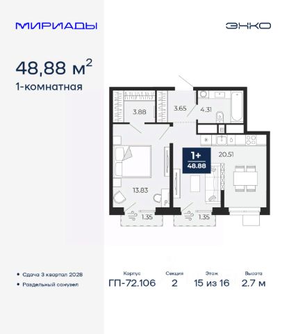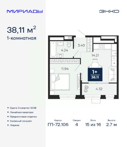 1-комн. квартира от застройщика с предчистовой отделкой в ЖК "Республики 205" на 15 этаже. Общая площадь: 55.76 кв.м. Высота потолков 2.7 м. Купить квартиру можно с помощью программ покупки от застройщика Брусника: - ипотека по эксклюзивной ставке с помощью в получении положительного кредитного решения через сервис ипотечный брокер; - квартиры в рассрочку без процентов от застройщика Брусника; - обмен квартиры на новую. Получить одобрение ипотеки или рассрочку, а также осуществить обмен квартир можно онлайн. Дом монолитный, многоподъездный, переменной этажности, от 7 до 25 этажей. Квартира находится в 1-й секции высотой 25 этажей в корпусе 3-1. На этаже 8 квартир. В подъезде 2 пассажирских и 1 грузовой лифт. Окончание строительства - 1 квартал 2027 года. Оформление сделки по договору долевого участия. Район Проект расположен в границах улиц Пермякова, Энергетиков, Воровского и Республики. До центра города — 10 минут на машине. Рядом — автомобильная развязка на пересечении улиц Пермякова и Республики. В шаговой доступности есть школы, детские сады, поликлиники, крупный торговый центр, автовокзал и несколько скверов. Проект "Республики 205" — это проект комплексного развития территории, уникальный по своему наполнению. Переосмысляя бывшую территорию завода медицинского оборудования, мы создадим новое место силы — микрорайон, насыщенный деловой, развлекательной, рекреационной, игровой, образовательной и медицинской инфраструктурой. До каждого полезного сервиса здесь можно будет дойти за 15 минут. Локальными центрами "Республики 205" будут общественные пространства — скверы, парки, бульвары и площади. В границах нашего участка мы намерены разместить школу, рассчитанную на 1550 учеников, два детских сада на 300 мест и встроенный детский сад на 100 мест. В одном из цехов бывшего завода расположится креативный кластер "Кузница". Он станет площадкой для нескольких институций — галереи, лектория, книжного магазина-библиотеки, кинобара и точек креативного pop-up-ритейла. Пешеходные бульвары внутри района соединят между собой улицу ресторанов, детские и спортивные площадки, событийную площадь и летний кинотеатр. Идентификатор квартиры по базе застройщика: РСП03. #2mA6ts