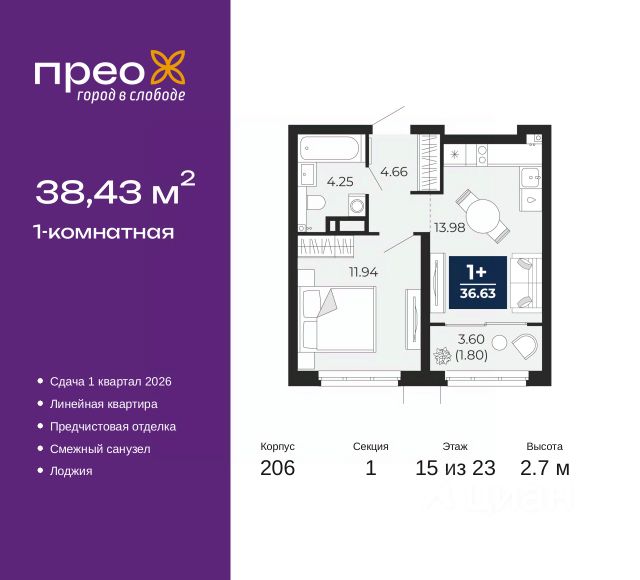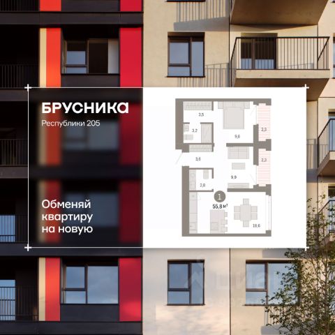 1-комн. квартира от застройщика с предчистовой отделкой в ЖК "Республики 205" на 15 этаже. Общая площадь: 55.76 кв.м. Высота потолков 2.7 м. Купить квартиру можно с помощью программ покупки от застройщика Брусника: - ипотека по эксклюзивной ставке с помощью в получении положительного кредитного решения через сервис ипотечный брокер; - квартиры в рассрочку без процентов от застройщика Брусника; - обмен квартиры на новую. Получить одобрение ипотеки или рассрочку, а также осуществить обмен квартир можно онлайн. Дом монолитный, многоподъездный, переменной этажности, от 7 до 25 этажей. Квартира находится в 1-й секции высотой 25 этажей в корпусе 3-1. На этаже 8 квартир. В подъезде 2 пассажирских и 1 грузовой лифт. Окончание строительства - 1 квартал 2027 года. Оформление сделки по договору долевого участия. Район Проект расположен в границах улиц Пермякова, Энергетиков, Воровского и Республики. До центра города — 10 минут на машине. Рядом — автомобильная развязка на пересечении улиц Пермякова и Республики. В шаговой доступности есть школы, детские сады, поликлиники, крупный торговый центр, автовокзал и несколько скверов. Проект "Республики 205" — это проект комплексного развития территории, уникальный по своему наполнению. Переосмысляя бывшую территорию завода медицинского оборудования, мы создадим новое место силы — микрорайон, насыщенный деловой, развлекательной, рекреационной, игровой, образовательной и медицинской инфраструктурой. До каждого полезного сервиса здесь можно будет дойти за 15 минут. Локальными центрами "Республики 205" будут общественные пространства — скверы, парки, бульвары и площади. В границах нашего участка мы намерены разместить школу, рассчитанную на 1550 учеников, два детских сада на 300 мест и встроенный детский сад на 100 мест. В одном из цехов бывшего завода расположится креативный кластер "Кузница". Он станет площадкой для нескольких институций — галереи, лектория, книжного магазина-библиотеки, кинобара и точек креативного pop-up-ритейла. Пешеходные бульвары внутри района соединят между собой улицу ресторанов, детские и спортивные площадки, событийную площадь и летний кинотеатр. Идентификатор квартиры по базе застройщика: РСП03. #Z6AmtZ