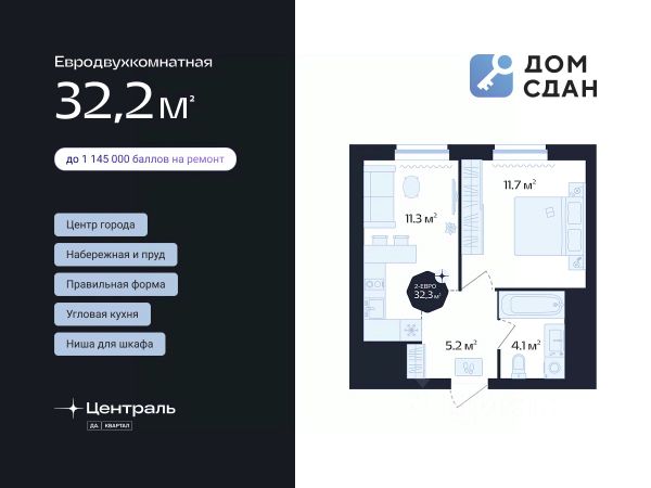 Квартира будет сдана с предчистовой отделкой: на полах стяжка под финишное покрытие, стены подготовлены под покраску или оклейку обоями, разведена вся электрика с подготовкой для установки выключателей и освещения.