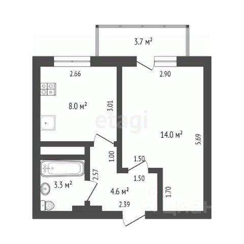 Однокомнатная квартира с предчистовой отделкой в ЖК "Окинава" на 16 этаже. Общая площадь: 42.43 кв.м., жилая: 13.53 кв.м., площадь просторной кухни-столовой: 17.64 кв.м. Все окна выходят на одну сторону. В квартире одна лоджия, один совмещенный санузел. Высота потолков 2.7 м.