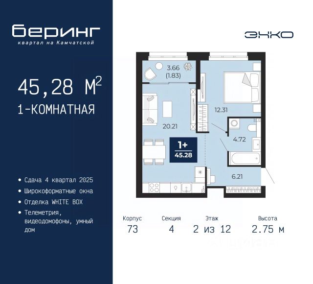 1-комн. квартира в ЖК "Беринг" на 2 этаже. Квартира без отделки, новый собственник может сделать ремонт по индивидуальному проекту. Общая площадь: 41.93 кв.м., жилая: 12.69 кв.м., площадь просторной кухни-столовой: 16.37 кв.м. Все окна выходят на одну сторону. В квартире одна лоджия, один совмещенный санузел. Высота потолков 2.75 м. Дом монолитный, многоподъездный, переменной этажности, от 9 до 21 этажей. Квартира находится в 3-й секции высотой 9 этажей в корпусе ГП-74. На этаже 7 квартир. В подъезде 1 грузовой лифт. Окончание строительства - 4 квартал 2025 года. Оформление сделки по договору долевого участия. Подобно знаменитому исследователю, мы чувствуем себя первооткрывателями этой локации. Хотим показать новую суть места, сформировать для вас жизненный опыт, которого ещё не было. Беринг — район зелёного цвета. Беринг — район, который откроется вам с другой стороны. Впечатлит новым уровнем комфорта и качеством жизни. Беринг — открытие на карте города. Первый квартал расположен в районе Тура, в границах улиц: Камчатская Западносибирская Энтузиастов. Вокруг уже есть всё для того, чтобы ежедневная рутина была лишь частью жизни и не доставляла дискомфорта. Школы и детские сады, магазины и аптеки, поликлиника, места для семейного отдыха, пеших и велопрогулок, и даже рыбалки. Масштабное озеленение дворов — визитная карточка ЭНКО и ваш оазис спокойствия, чтобы отвлечься от повседневности. Раскидистые деревья, кустарники, травы и цветы — осталось остановиться, вдохнуть и расслабиться, глядя на эту природную красоту. Стилистика подъездов продолжает концепцию Беринга, вдохновлённого Камчаткой: сдержанный, но при этом впечатляющий дизайн соседствует с удобством и функциональностью. #2u5Mom