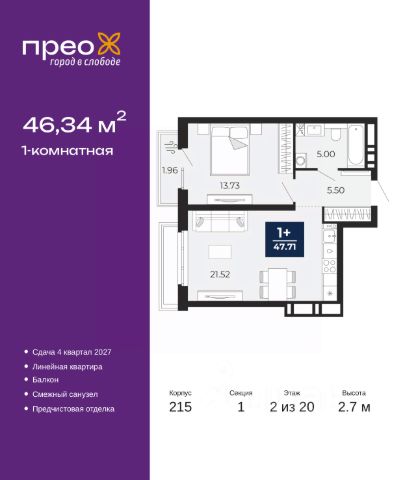 Квартира с кухней-гостиной и одной спальней в Октябрьском на Туре. Особенности планировки: предчистовая отделка. квартиры в нашей базе: ОКТ09-Ж5.2.2. Район Проект расположен на берегу реки, в одном из самых живописных и экологичных районов Тюмени. За последние годы облик района изменился. По соседству с индивидуальной застройкой выросли многоквартирные дома. При проектировании "Октябрьского на Туре" нашей приоритетной задачей стало сохранение природного ландшафта: мы постарались деликатно вписать в него современную архитектуру. Квартал удачно расположен с точки зрения дорожной инфраструктуры. На автомобиле путь до центра города составит 15 минут. Добраться до набережной и главных тюменских достопримечательностей можно и на общественном транспорте. В пешей доступности находится автобусная остановка. Проект По мастер-плану здесь будет восемь домов. Ядро застройки составляют замкнутые кварталы переменной этажности. Их высотность понижается по мере приближения к реке. На углах участка мы разместили башни-доминанты. Одной из достопримечательностей квартала станет парк на Туре — здесь появится зеленая зона протяженностью около 6 километров для пеших и велопрогулок. Смысловая ось квартала — широкая главная улица с высаженными вдоль неё высокими деревьями. Они создают тень и работают как шумо- и пылезащитные экраны. Это место сосредоточения основных пешеходных и транспортных потоков, на сторону которых мы ориентировали большинство коммерческих помещений. Отсюда жители могут свернуть на тихие соседские улицы и попасть на внутриквартальную площадь — ещё одну точку притяжения. #24ff3l