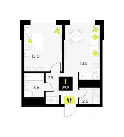 Продаётся квартира площадью 36.3 м2 в жилом комплексе "Айрис". Квартира находится на 2 этаже, жилая площадь квартиры 9.7 м2, площадь просторной кухни — 17.6 м2. Среди особенностей планировки — изолированные комнаты с окнами на одну сторону, 1 совмещённый санузел. Срок сдачи — III кв. 2027 Жилой комплекс "Айрис" — это: - фиджитал-квартал в Тюмени - дома высотой от 7 до 25 этажей - квартиры с системой "Умный дом" - цифровые технологии как элемент благоустройства Окружение В нескольких минутах ходьбы от дома — парк "Комарово" с волейбольной площадкой, открытым кинотеатром, зонами для барбекю и катком. Неподалеку от Айрис находится центр иппотерапии, где можно покататься на лошадях и взять уроки верховой езды. На территории Айрис появится собственный парк с прогулочными аллеями. Инфраструктура В 5-10 минутах от квартала открыты 2 детских сада и гимназия. На шопинг можно отправиться в торговые комплексы "Колумб" и "Кристалл" — они находятся недалеко от дома. Благоустройство Уютный двор — приватное пространство для жителей. В беседках можно будет почитать книгу в тишине, а в тени деревьев устроиться на пикник. На крыше многоуровневого паркинга будет лаунж-зона с кинотеатром, баскетбольная площадка и воркаут-пространство, где можно позаниматься с виртуальным тренером — достаточно отсканировать код. Лобби Интерьеры лобби выполнены в пастельных тонах с элементами фиджитал-решений. Для отдыха и ожидания гостей создана лаунж-зона. Также есть гостевые санузлы. Колясочные Возвращайтесь налегке после прогулки с малышом — оставить коляску можно в специальном помещении на первом этаже. Кладовые Для сезонных и габаритных вещей предусмотрены отдельные кладовые на цокольном этаже. В каждом помещении уже проведено электричество и выполнена стяжка пола. Паркинг На территории — два многоуровневых наземных паркинга. Один из них примыкает к домам — из него можно напрямую пройти в парадные. Планировки Планировки квартала — от компактной студии до сити-хауса с собственным палисадником — соответствуют любым жизненным сценариям. Можно выбрать квартиры с террасами и готовыми дизайнерскими интерьерами.