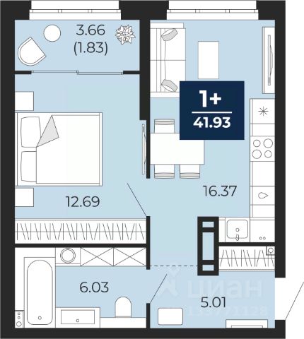 1-комн. квартира от застройщика с предчистовой отделкой в ЖК "Республики 205" на 2 этаже. Общая площадь: 84.02 кв.м., жилая: 40 кв.м., площадь просторной кухни-гостиной: 10 кв.м. Все окна выходят на одну сторону. В квартире один балкон, один совмещенный санузел. Высота потолков 2.6 м.