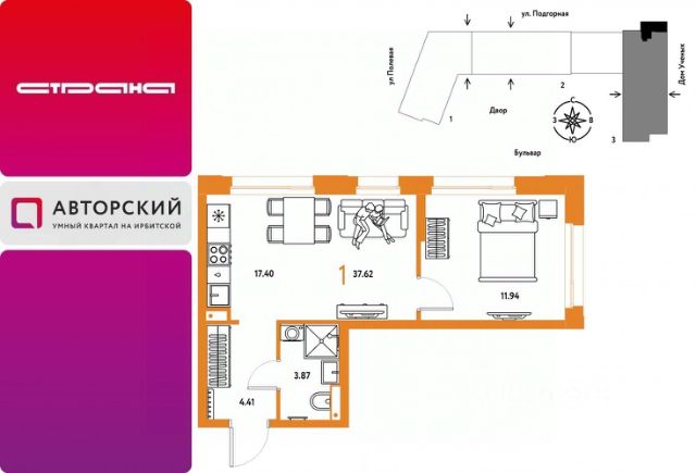 Новая квартира в ЖК "Авторский" напрямую от федерального застройщика "Страна Девелопмент". Продается 1комнатная квартира на 2 этаже от застройщика Страна Девелопмент. Площадь квартиры 35,14 кв. м. Жилой комплекс "Авторский" — квартал для авторов своей жизни от федерального застройщика "Страна Девелопмент" вблизи исторического центра — до Моста Влюблённых 4 минуты на авто, а ещё рядом ведущие вузы Тюмени. ПРЕИМУЩЕСТВА - Тематический бульвар объединяет дома и закрытые дворы квартала в единую экосистему: зелень, перголы для отдыха, детские и спортивные площадки. По вечерам бульвар преображается: освещение создаёт уютную атмосферу. - Новый детский сад рядом, который появится в 2026 году прямо в одном из корпусов комплекса. В нём выделено 150 мест для малышей. - Во дворах нет машин, шума, выхлопных газов и посторонних людей. Всё пространство разделено на зоны по интересам и возрастам. Для детей — игровые площадки из эко-материалов и мягкая защита от падений. Для взрослых — зоны отдыха, воркаут-площадки и тропинки для неспешных прогулок. ОТДЕЛКА Квартиры сдаются с предчистовой отделкой: произведена разводка электричества и отопления, выполнена стяжка пола, стены выровнены "под маяк", установлены розетки, выключатели и радиаторы. ДИЗАЙНЕРСКАЯ ОТДЕЛКА При покупке квартиры в ЖК "Авторский" можно включить стоимость ремонта в ипотеку. Пять вариантов на выбор: хлопковая нить, серый шторм, белый камень, шалфей, голубой вереск. СПОСОБЫ ПОКУПКИ Сотрудники "Страна Девелопмент" будут сопровождать вас на каждом этапе сделки, помогут получить одобрение по ипотеке или снизить ежемесячный платеж. - ипотека - рассрочка - с использованием материнского капитала -100% оплата наличными Цены на квартиры указаны без учета скидок. На консультации менеджер подскажет, какие акции действуют, и как получить одобрение по ипотеке с низкой ставкой.